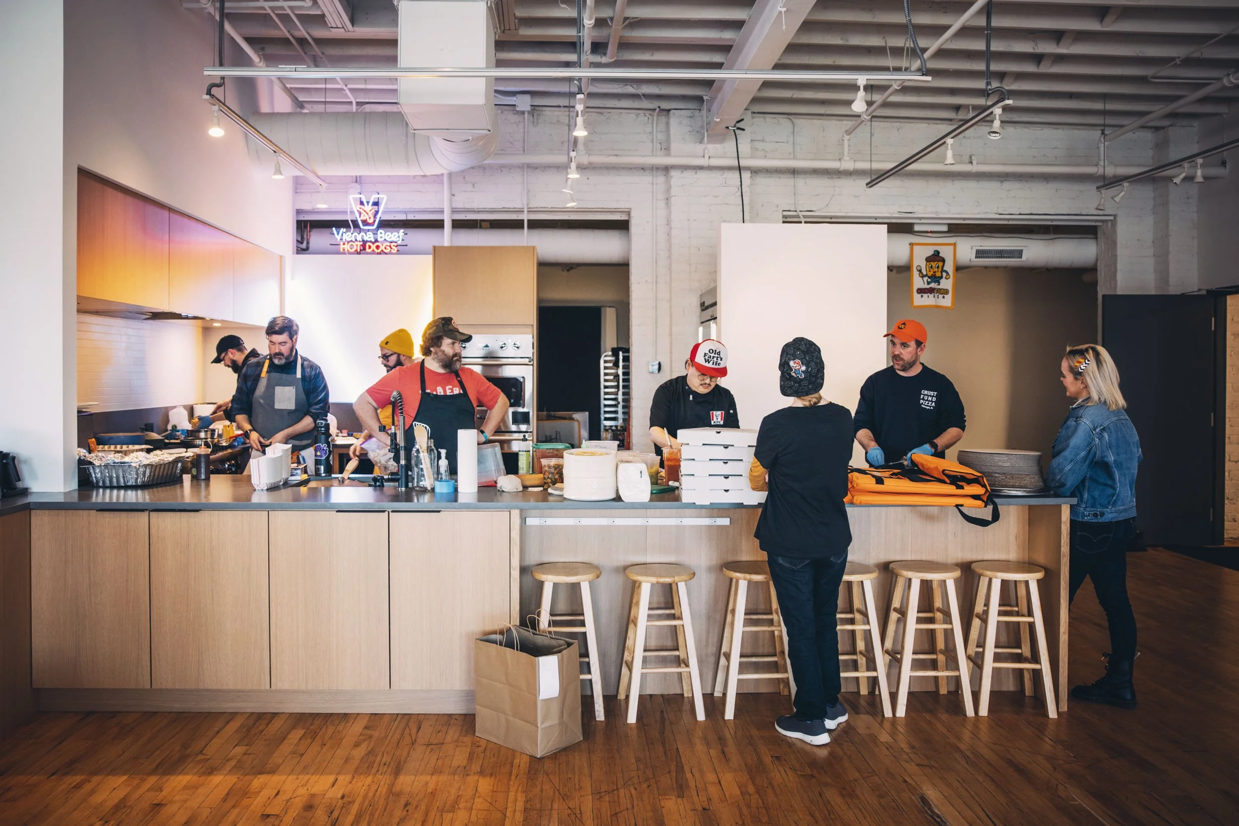 See You Soon features a high-end, stylish kitchen that is perfect for hosting events or preparing meals for pop-up dinners. The kitchen is equipped with top-of-the-line Viking appliances as well as ample counter space and storage. With its sleek design by our neighbors Range and modern amenities, this kitchen is the ideal space for hosting a variety of events, from intimate dinners to large-scale gatherings. The studio also features a spacious and customizable dining area with windows overlooking The 606, perfect for enjoying delicious meals with friends, family, or clients. Whether you're a professional chef or a food enthusiast looking for a unique space to host your event, the See You Soon kitchen is the perfect choice. With its prime location inside the vibrant Kimball Arts Center and state-of-the-art facilities, this stylish kitchen is sure to impress your guests and make your event unforgettable.